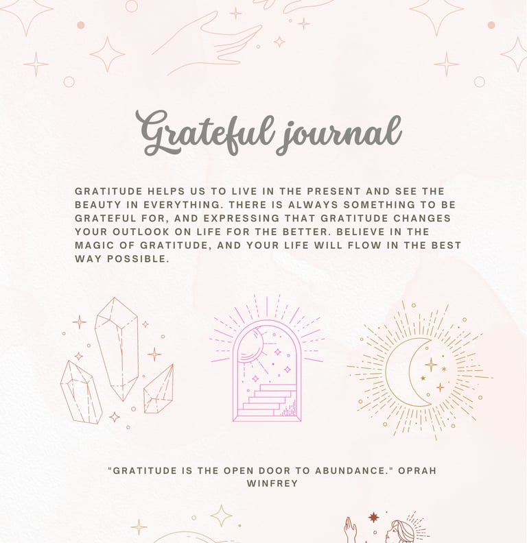 The Grateful Journal is designed to help you focus on the positive aspects of your life, fostering a mindset of abundance and appreciation.