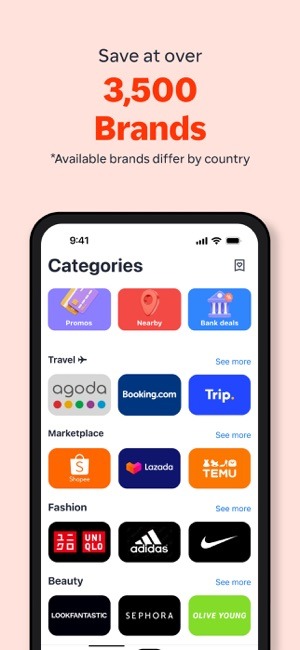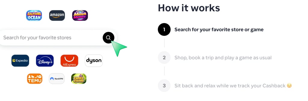 Browse Stores: Shop from over 3,000 participating retailers, including popular brands like Amazon, Walmart, Expedia, and more.
