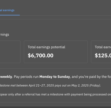 Pro tip: Guide your referrals through onboarding, so you both get paid faster!